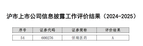 与此同时,在上海交易所公布的2024-2025年度沪市上市公司信息披露工作评价中,AG百家乐医药再次荣获最高评级——A级。